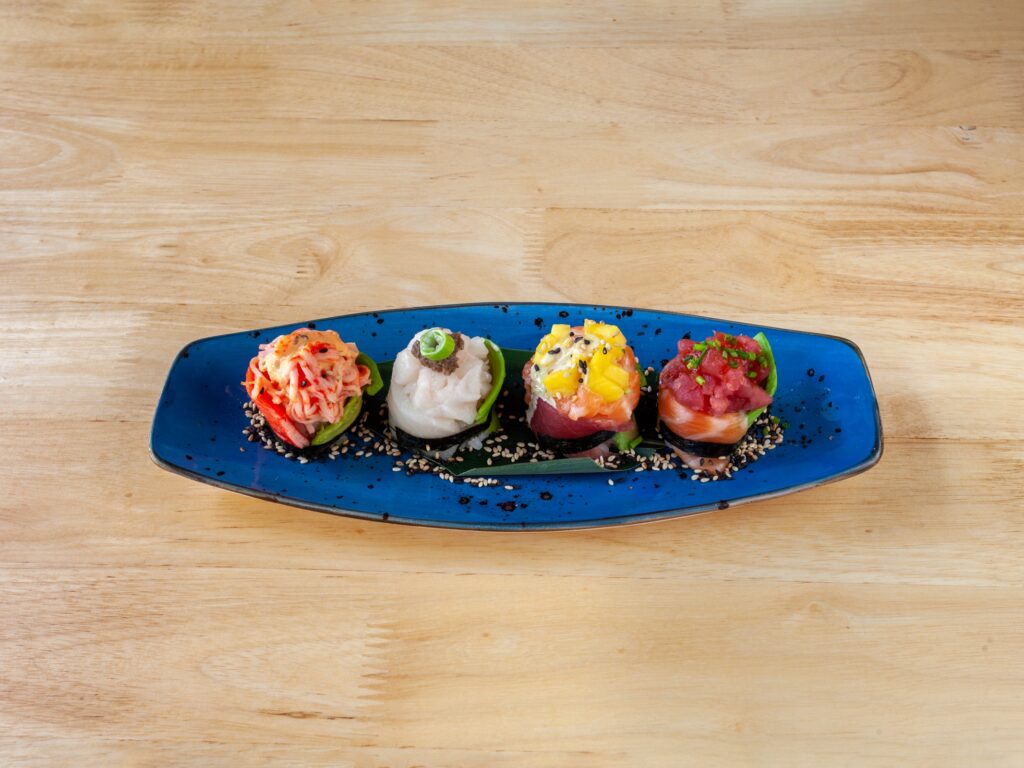 El Makitake Tulips es un plato de 4 unidades por un precio de 10,90 euros. Se trata de unos deliciosos tulips de aguacate con tarteres muy variados. Se pueden encontrar de atún, kanikama, pez mantequilla o salmón.