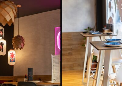 Adéntrate en nuestro restaurante y sumérgete en un ambiente que combina la elegancia con la calidez. La decoración moderna y minimalista crea un espacio acogedor perfecto para una comida íntima o una celebración especial. Nuestro personal amable y atento está comprometido a hacer que tu visita sea inolvidable